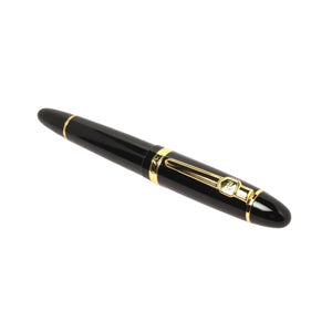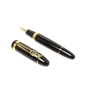 Timeless elegance meets everyday reliability in this Jinhao Black Oracle Fountain Pen Featuring a glossy jet-black lacquered body paired with rich gold-plated trims, the pen embodies traditional luxury styling perfect for professionals and formal writing. The cigar-shaped silhouette offers a comfortable grip and balanced weight, while the polished gold clip and center band add a refined executive touch. Its minimalist aesthetic makes it suitable for both office use and special occasions.