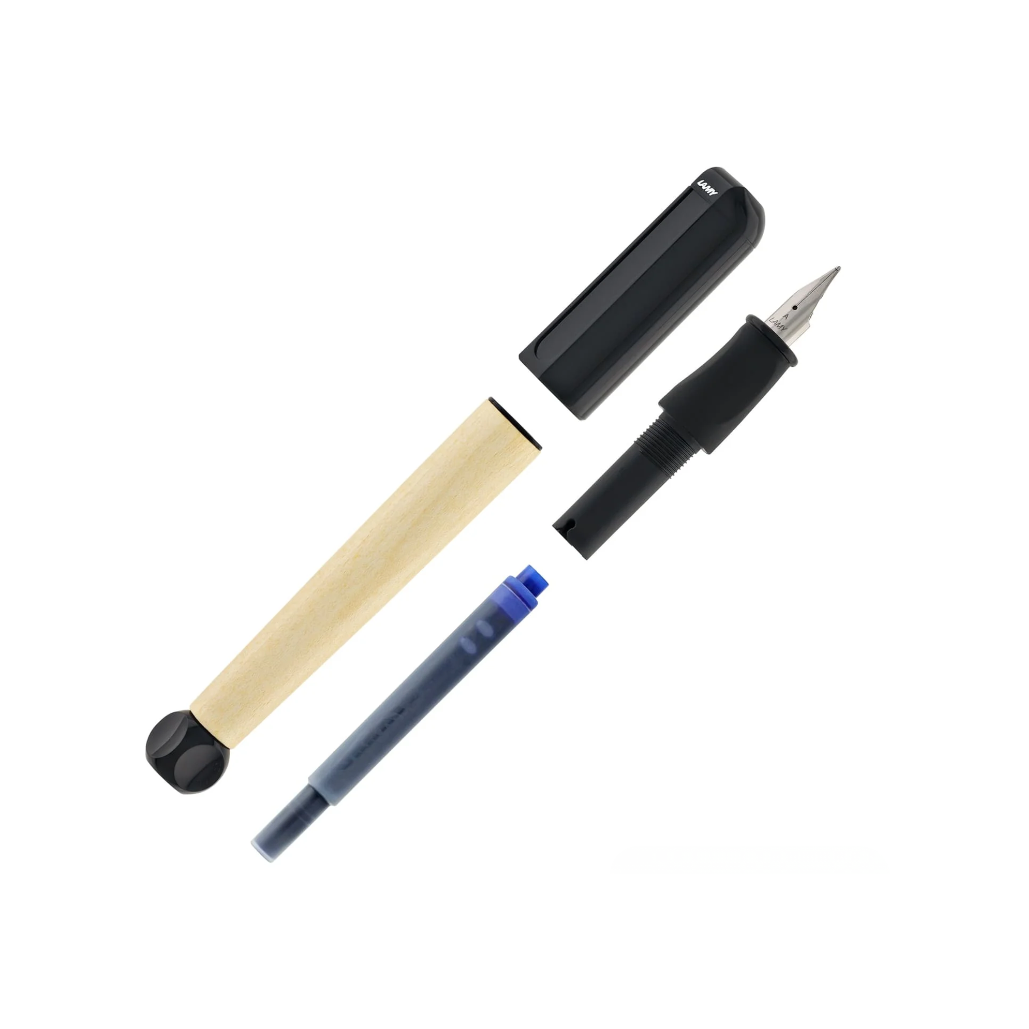 The LAMY ABC Beginner’s Fountain Pen using ink is introduced as first pen for Children / Students. It is designed for children, from an ergonomic as well as an pedagogical point of view. This makes writing both easy and fun. Maple wood body, cap and top part: shiny plastic. Non-slip rubber coated grip section. Stainless steel polished nib. With Lamy’s help, children learn to write systematically.