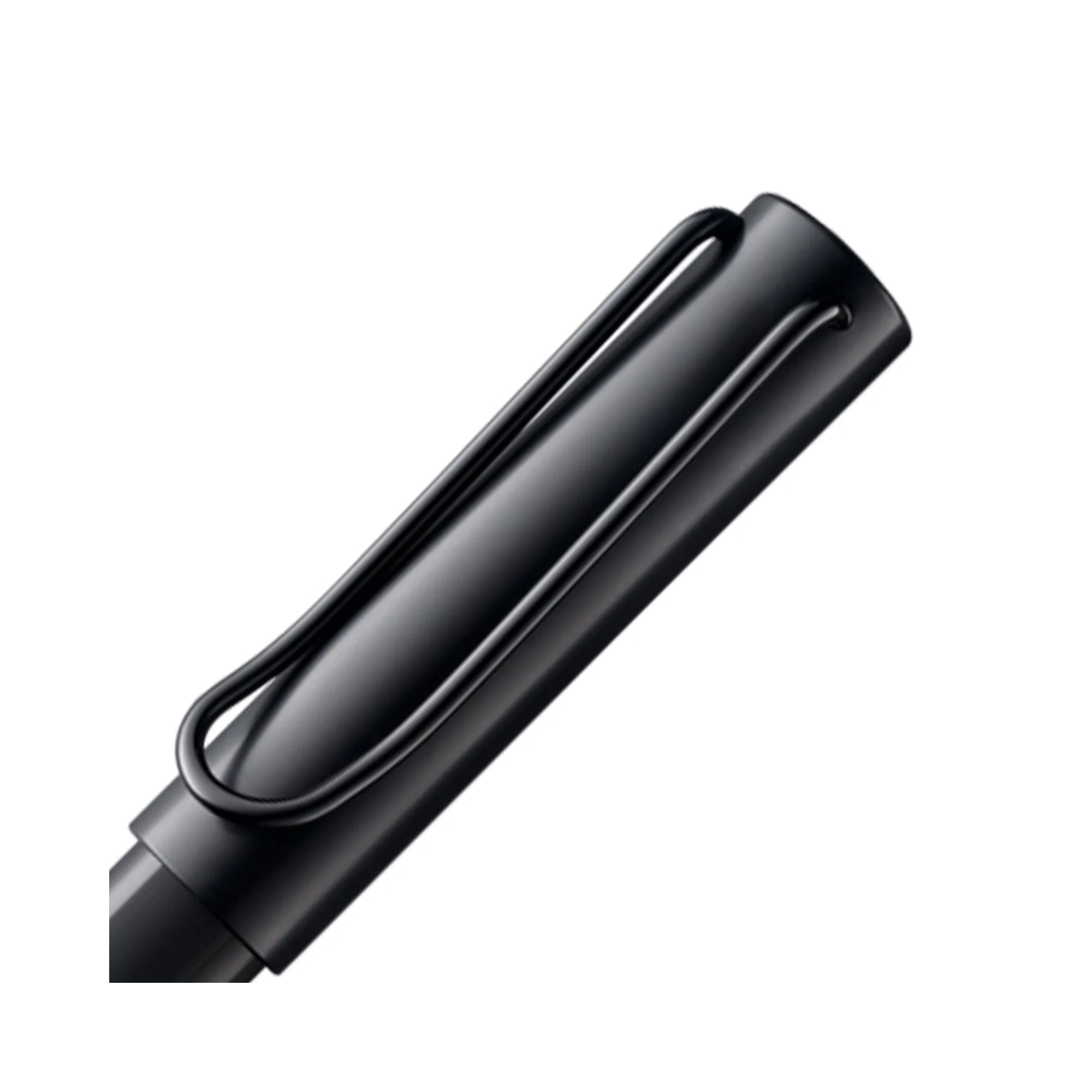 The Lamy AL-star is the attractive, young writing instrument which satisfies even the highest requirements. AL-star rollerball pen with matte black anodised aluminium barrel and cap, with translucent grey triangular grip area. Strong metal wire pocket clip. Fitted with refill LAMY M 63 M black.