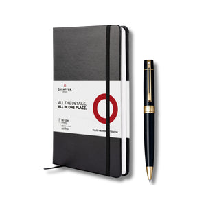 Sheaffer Gift Set ft. Glossy Black 100 9325 Ballpoint Pen with Gold Trim and Medium Notebook