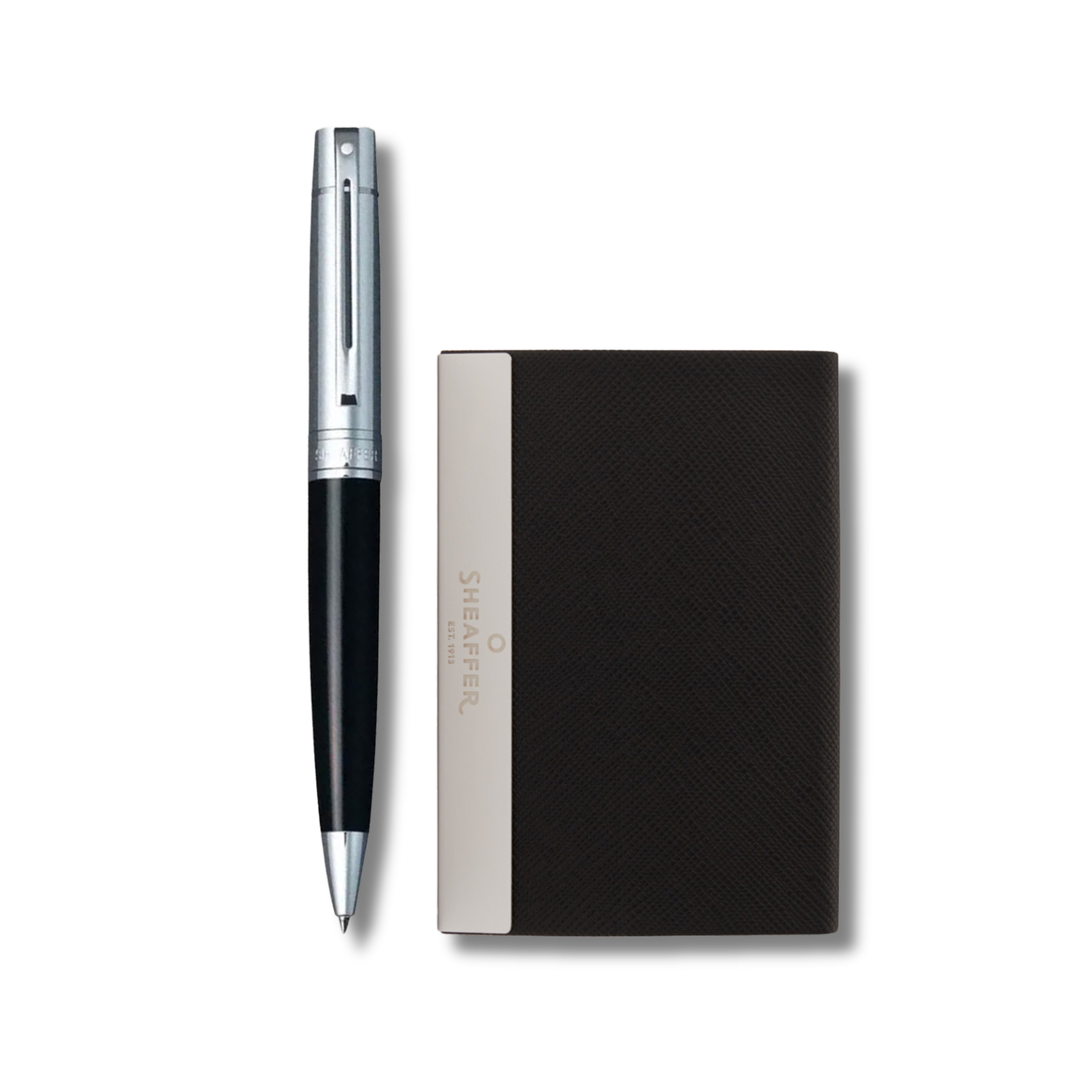 Sheaffer Gift Set ft. Glossy Black 300 Ballpoint Pen with Chrome Trims and Business Card Holder