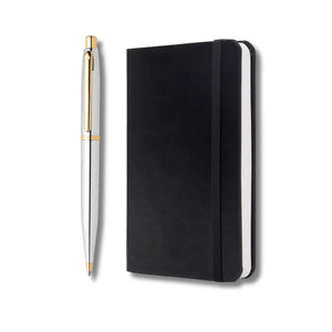 Sheaffer Polished Chrome with Gold Trims Ballpoint Pen with Small Notebook