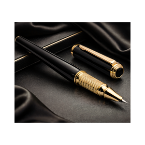 The Sovereign Black Fountain Pen features a deep glossy black finish complemented by elegant gold trims for a timeless, premium look. Equipped with a smooth fine nib and converter filling system, it delivers precise, comfortable, and reliable everyday writing — ideal for professionals, students, and gifting.